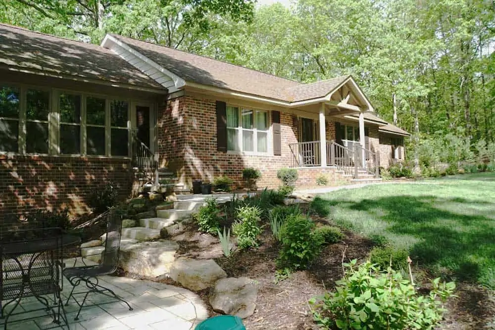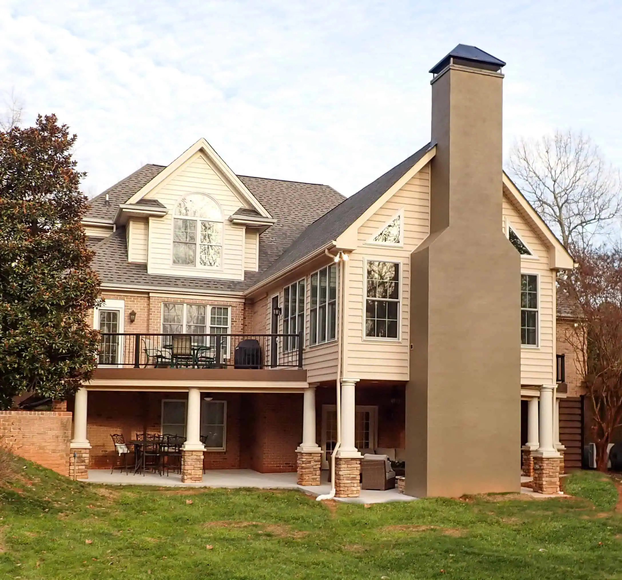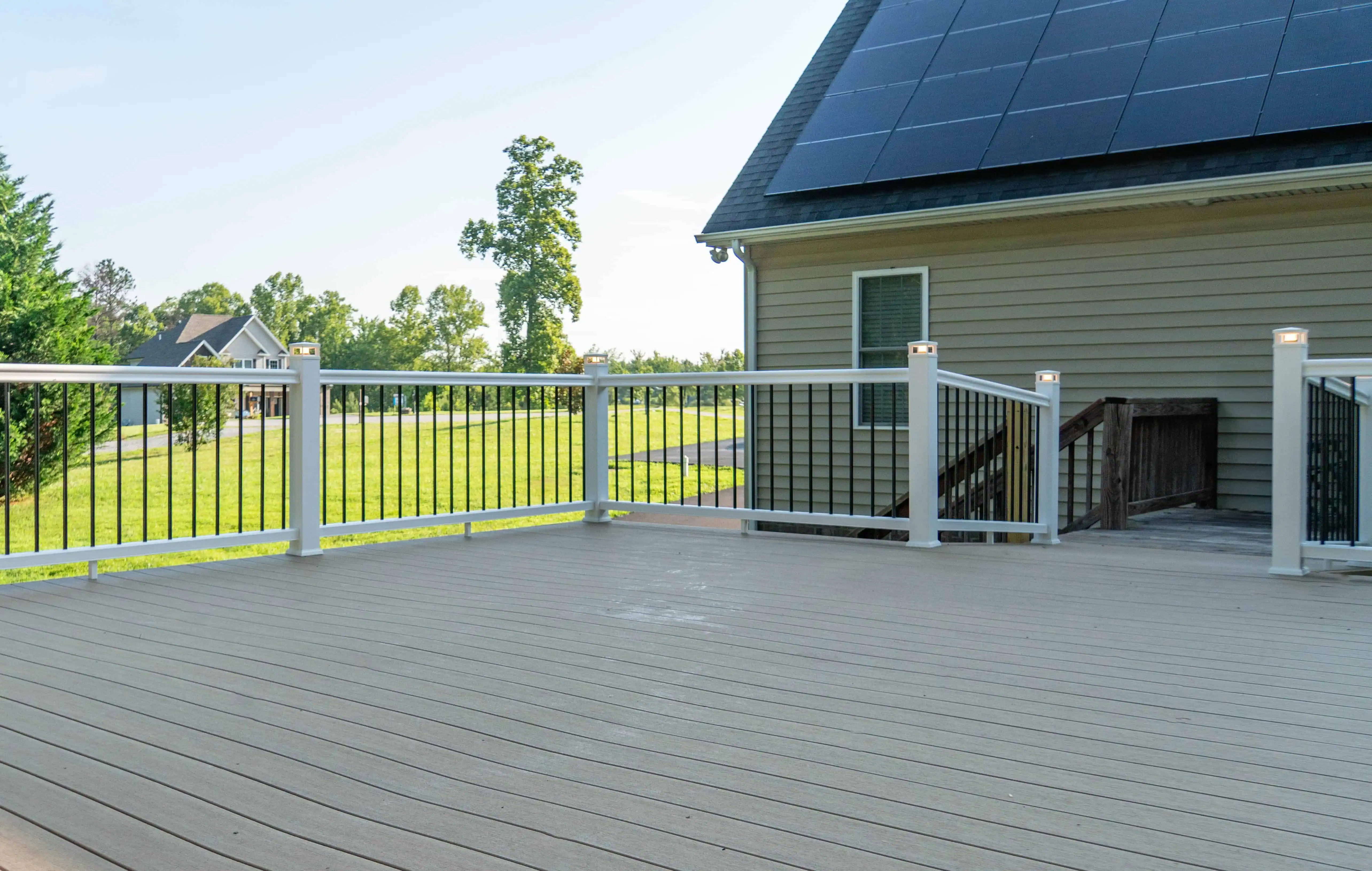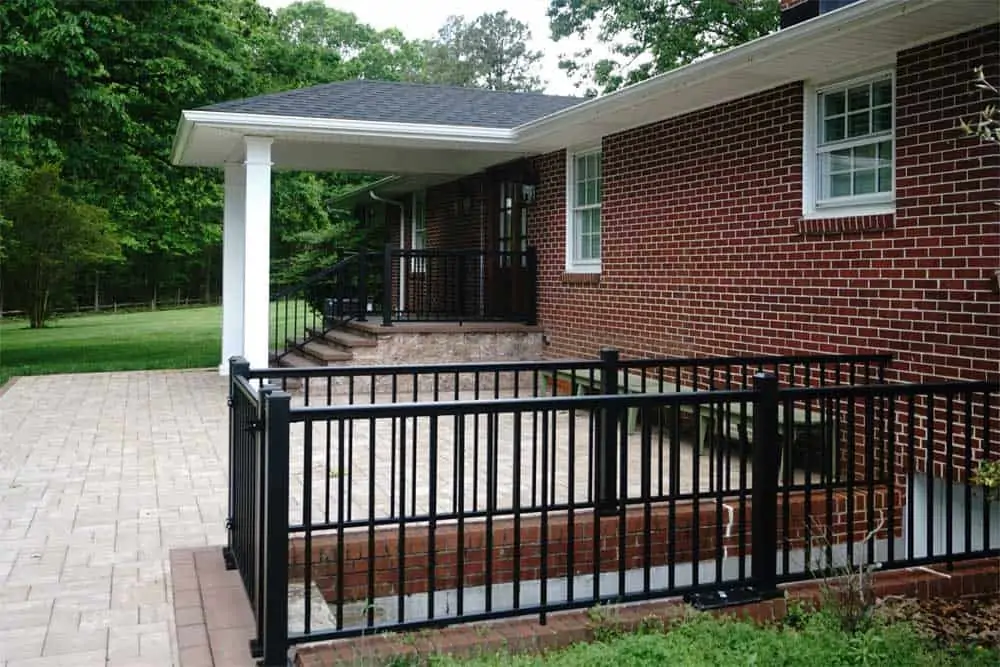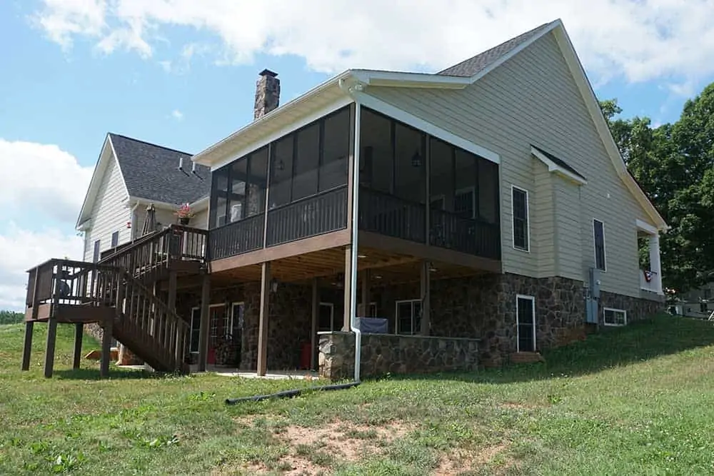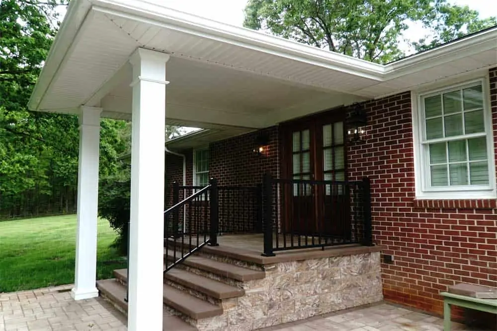 Also in the fall of 2019 we were contacted by Mr. and Mrs. Wallace because they were having trouble finding a reliable contractor. The Wallace home is in Drakes Branch, VA, a rural Lunenberg County community at the outer southeast fringe of our service area. They had already had a patio and porch base built so we added their custom hip roof cover and metal railings strategically matched to the home’s style and colors.