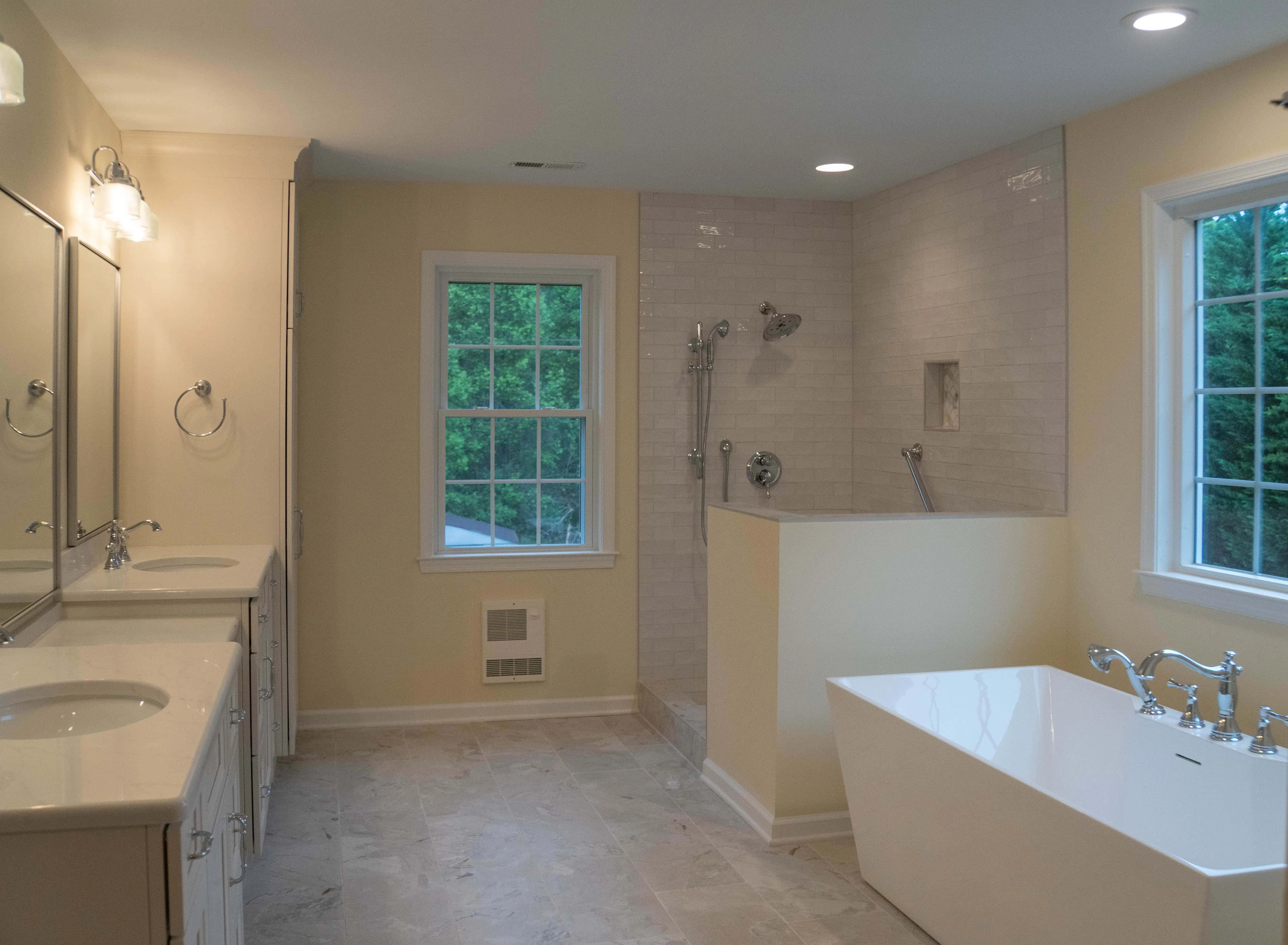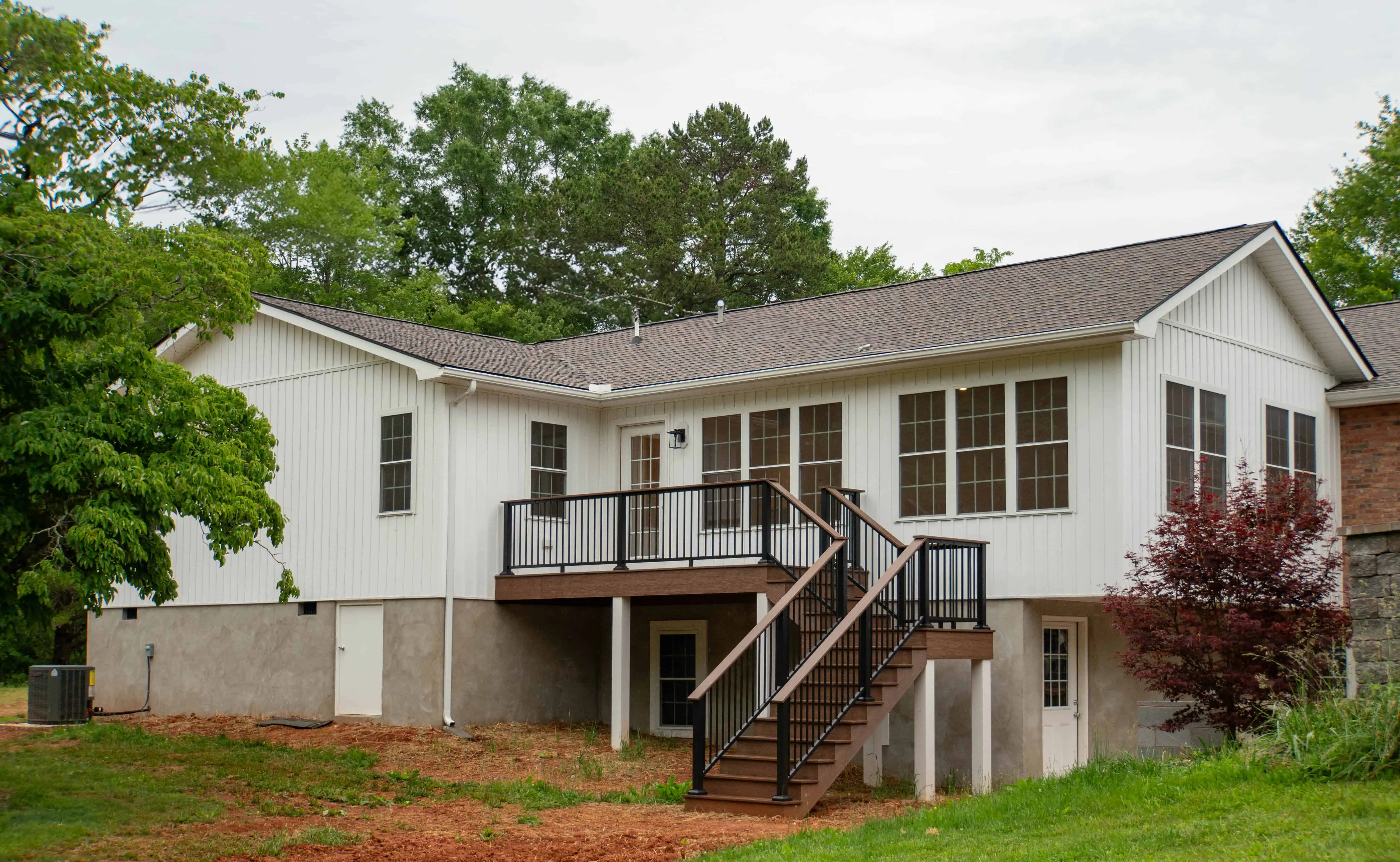 Featured here are three home addition projects. The first is a new sunroom addition with two decks in Appomattox. It also has a wonderful entertainment area underneath. The second is an outside and inside view of an Appomattox living room addition with a custom masonry chimney that adds charm both inside and out. The entire house received a new roof and the styling created the appearance that the addition could have been part of the original home. The third is a master bathroom addition in Brookneal, VA. The use of redwood siding on the exterior blended nicely with colonial style home and its surroundings.